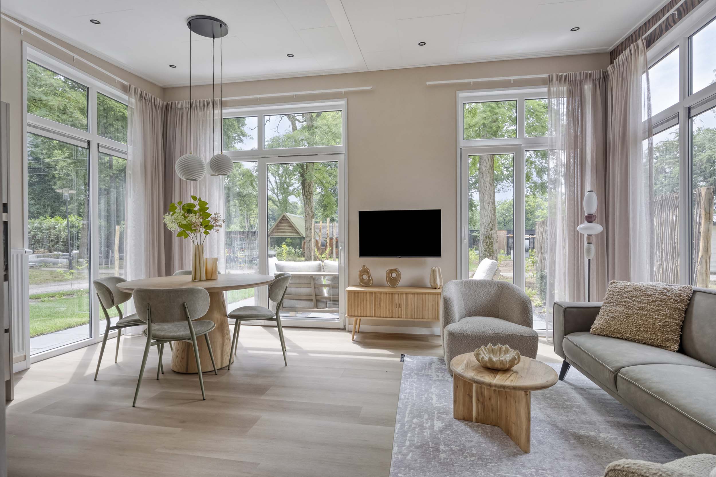 Stap binnen in de Heidenhof: een elegante vakantiewoning, geschikt voor 4 personen. Deze stijlvolle woning op Bospark Ede combineert modern design met een warme, natuurlijke sfeer. De ideale plek om tot rust te komen, midden in de natuur van de Veluwe.