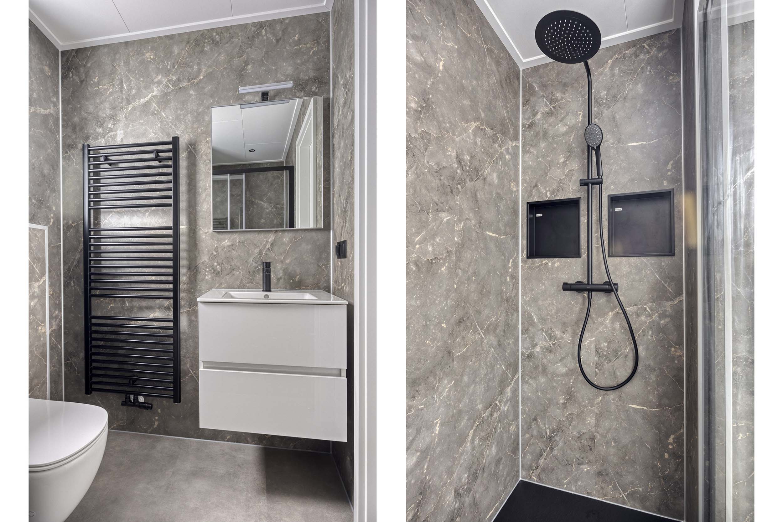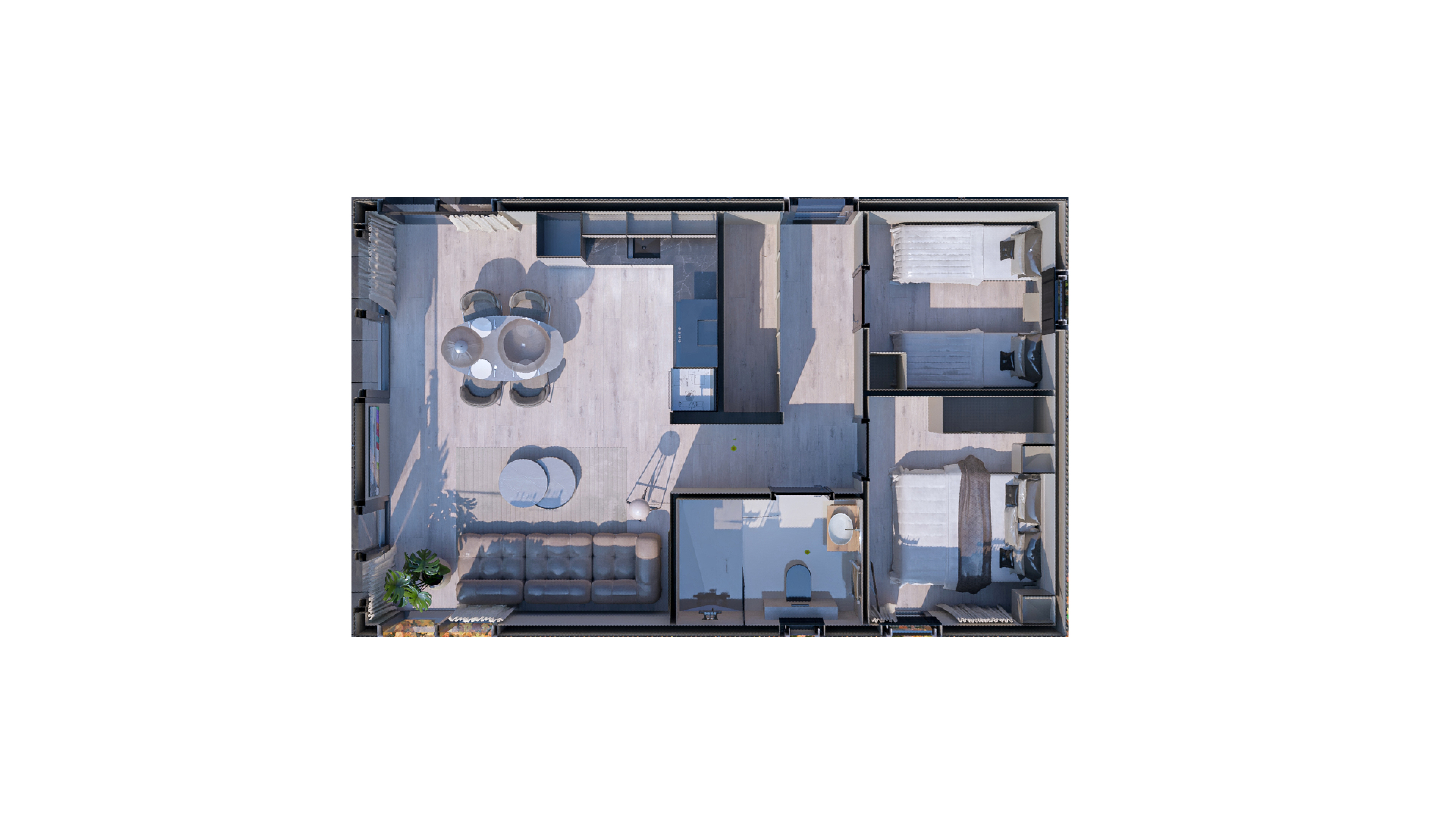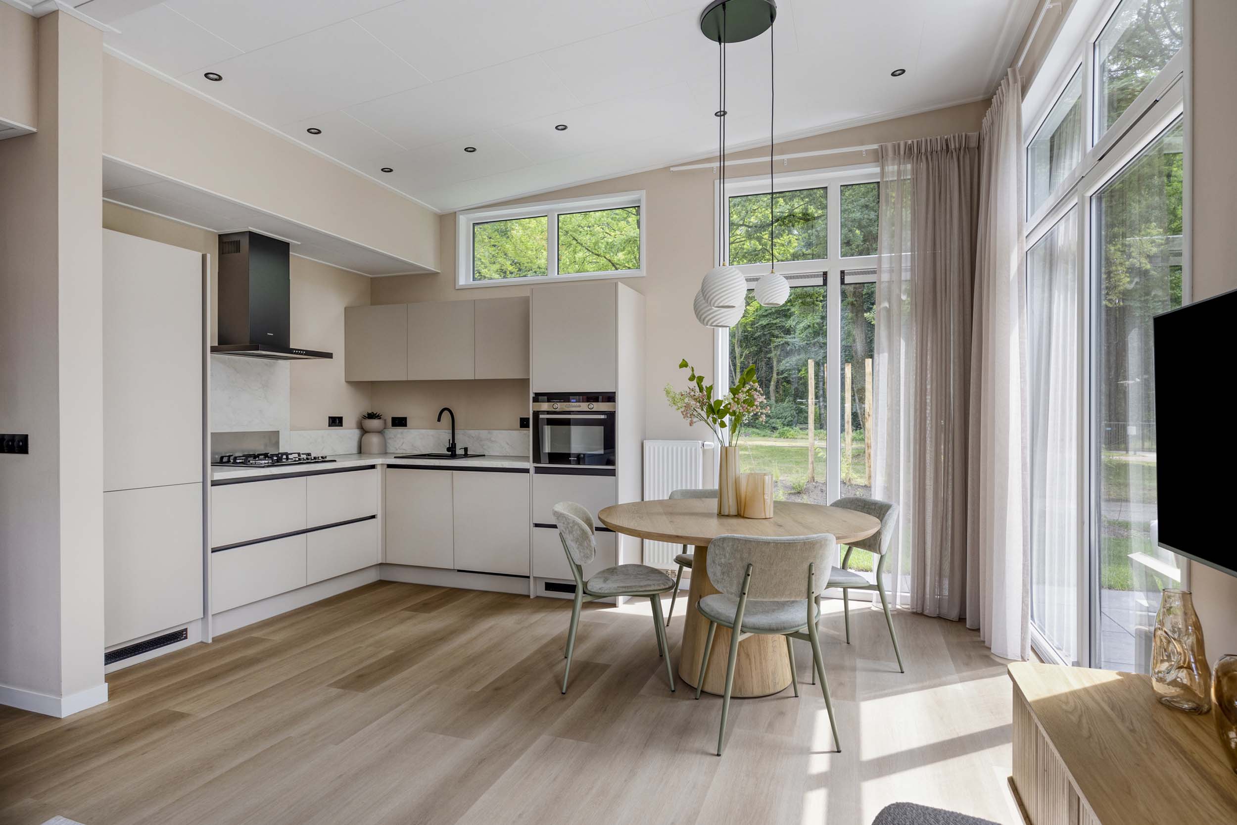 De Heidenhof biedt een slimme indeling met twee comfortabele slaapkamers, een moderne badkamer en een sfeervolle leefruimte met open keuken. Grote raampartijen zorgen voor een zee aan licht en verbinding met de omliggende natuur. De openslaande deuren leiden naar het aangelegde terras, waar het échte genieten kan beginnen.