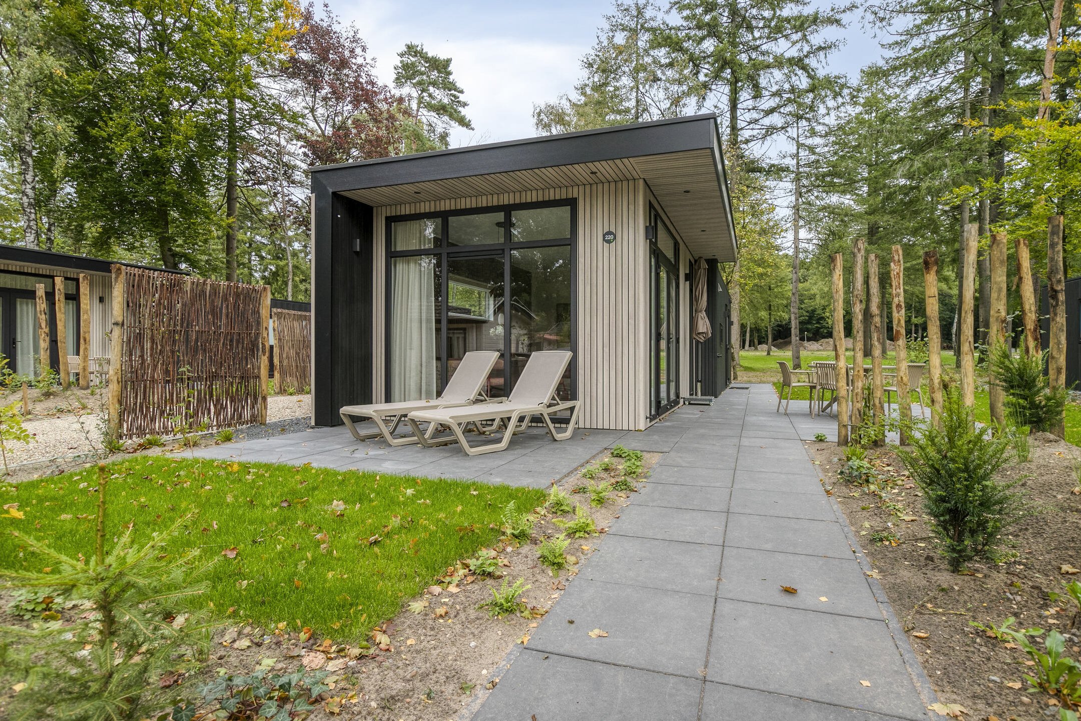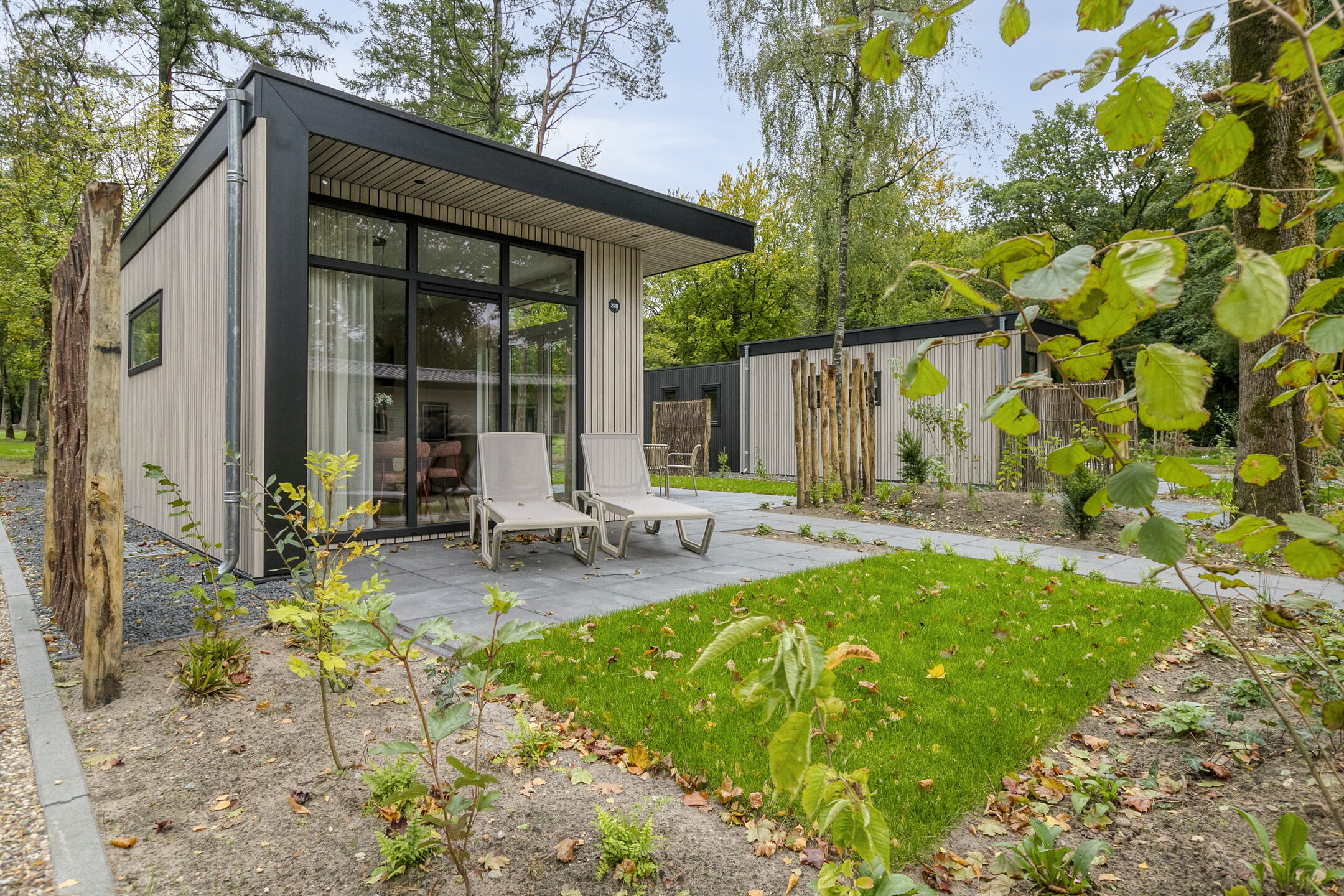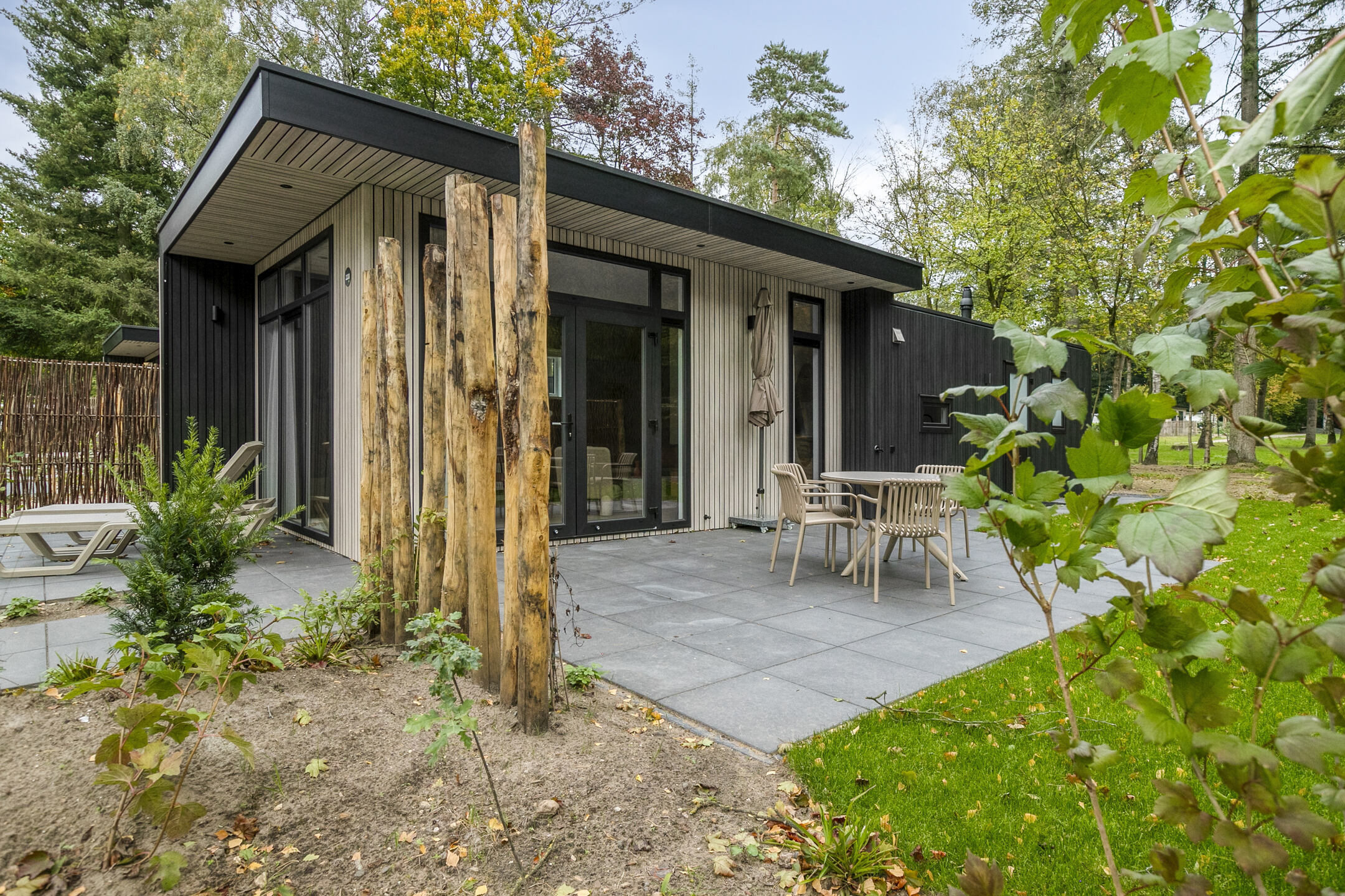 De openslaande deuren geven toegang tot het ruime terras en de natuurrijke tuin; de ideale plek om volledig tot rust te komen op uw eigen plekje op de Veluwe.