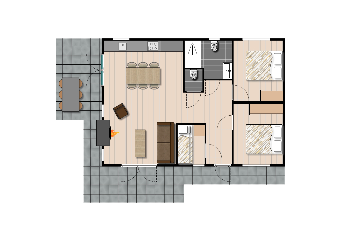 In de hal vindt u een moderne badkamer met een inloopdouche, wastafel en toilet. Voor extra gemak is er een apart tweede toilet, wat ideaal is voor gezelschappen. De slaapkamers zijn voorzien van comfortabele bedden en voldoende kastruimte, zodat u ook tijdens uw verblijf van alle gemakken bent voorzien.