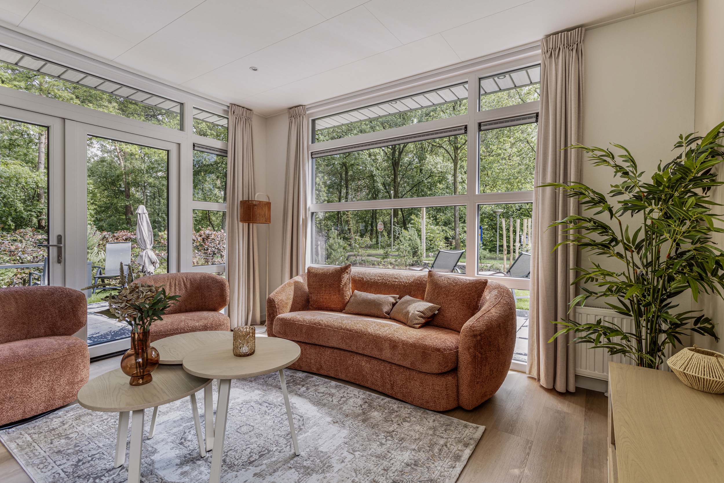 De openslaande deuren bieden toegang tot de tuin met terras. Voor ultieme ontspanning na een dag in de natuur of een bezoek aan de Efteling of Safaripark de Beekse Bergen, is de vakantiewoning uit te breiden met een luxe hottub. Zo kan men genieten van het buitenleven, omringd door het groen van natuurgebied de Brabantse Kempen. Uiteraard is de woning voorzien van een eigen parkeerplaats.