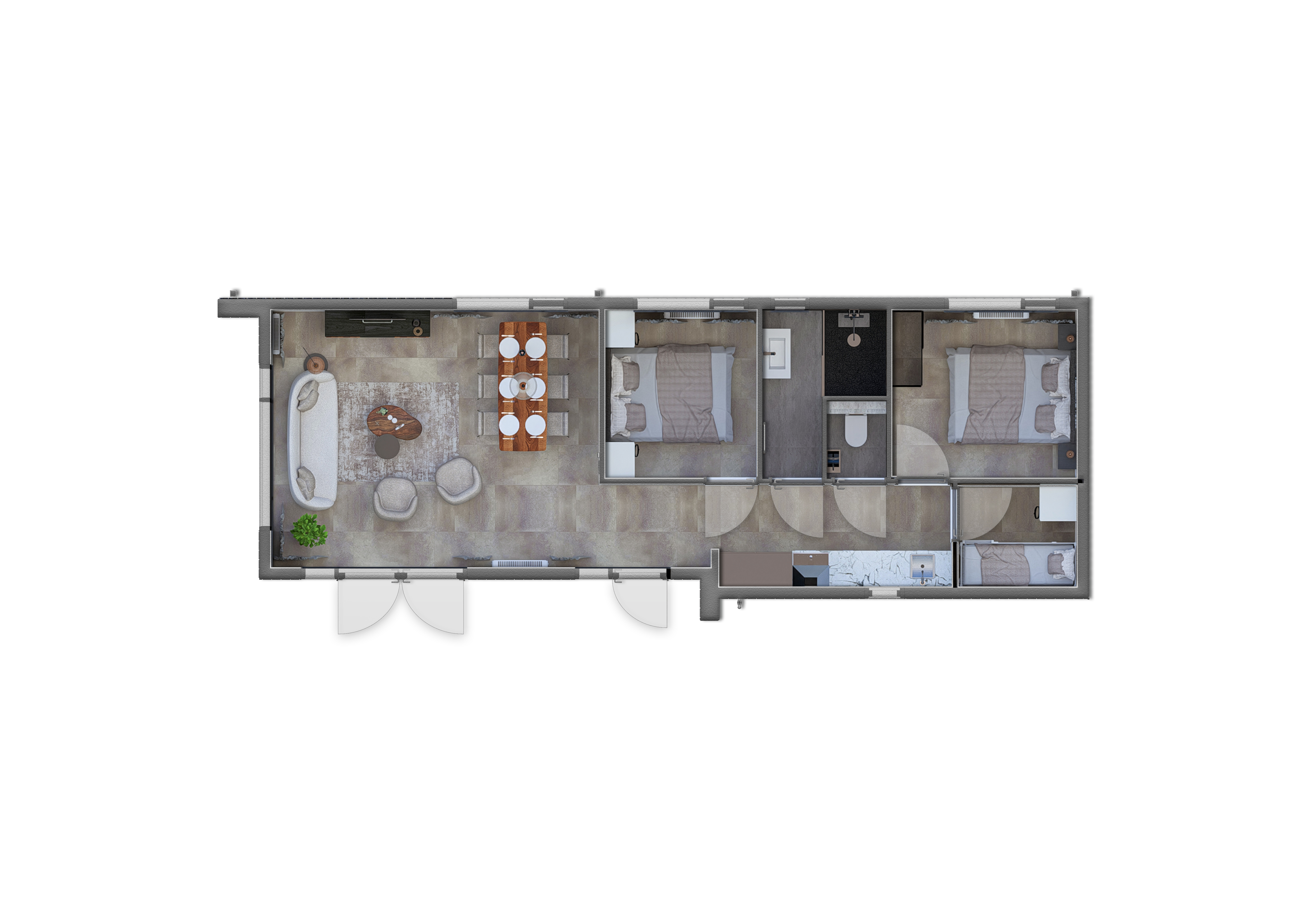 Ontdek de comfortabele vakantiewoning ‘Bosvlucht’. Deze modern ingerichte woning biedt ruimte voor 4 tot 6 personen en is ideaal voor een ontspannen verblijf midden in de natuur. De uitstraling en de vele, hoge ramen van de vakantiewoning zorgen voor veel natuurlijk lichtinval en een harmonieuze inpassing in de bosrijke omgeving.
