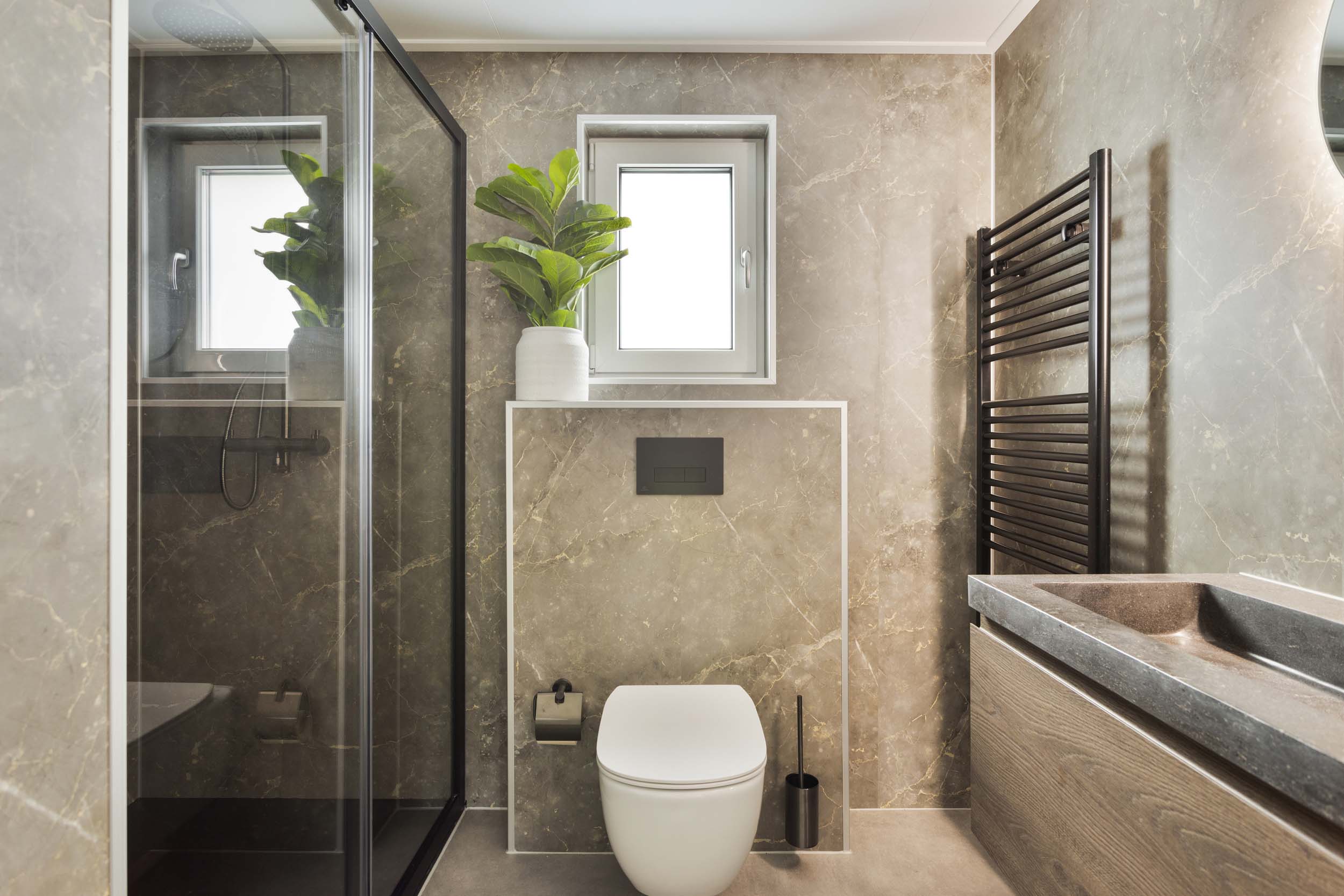 De moderne badkamer beschikt over een ruime douche, wastafel en toilet. De vakantiewoning beschikt daarbij over een apart toilet, altijd fijn! Op de slaapkamers is het heerlijk tot rust komen in de comfortabele tweepersoonsbedden.
