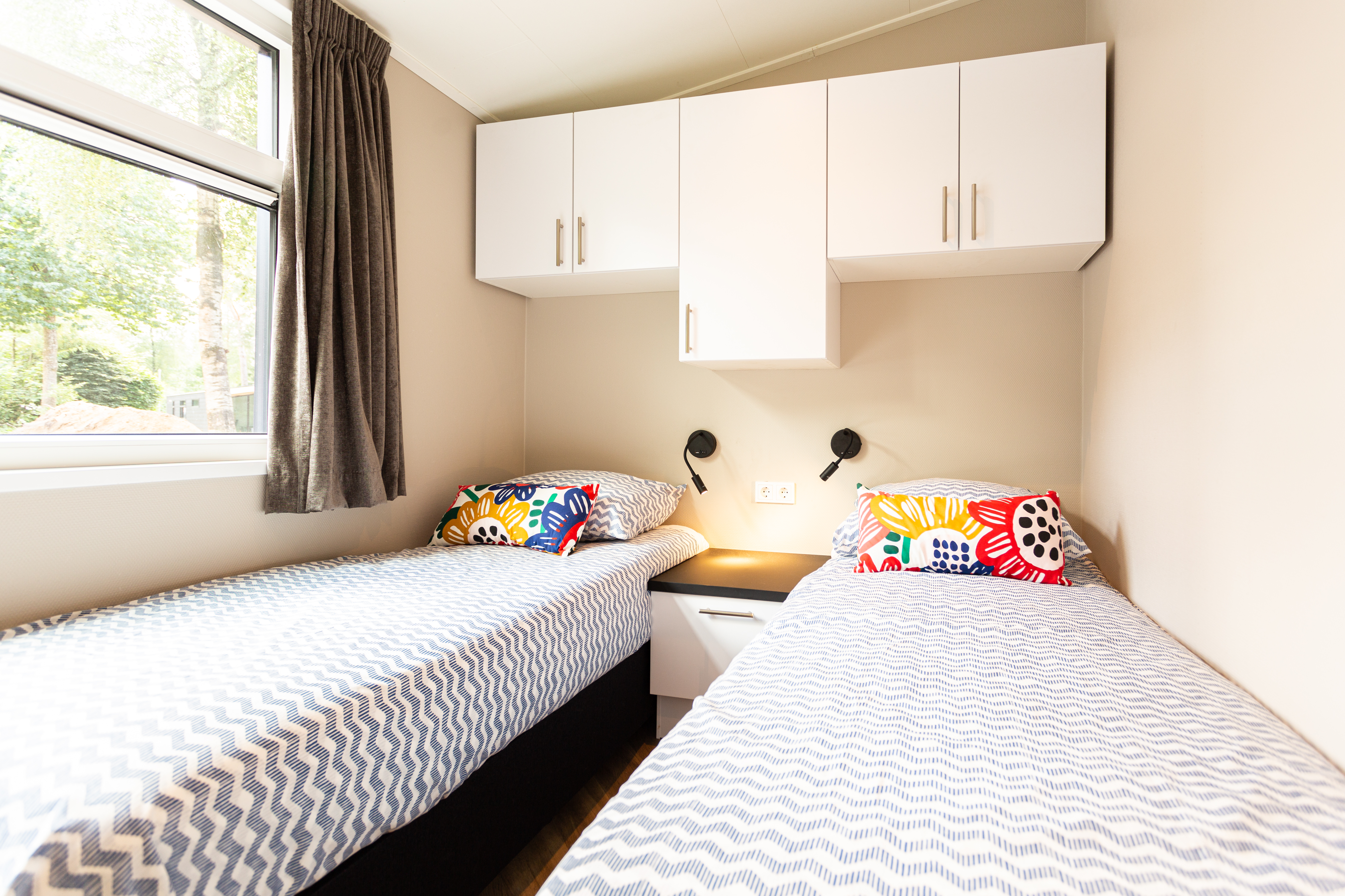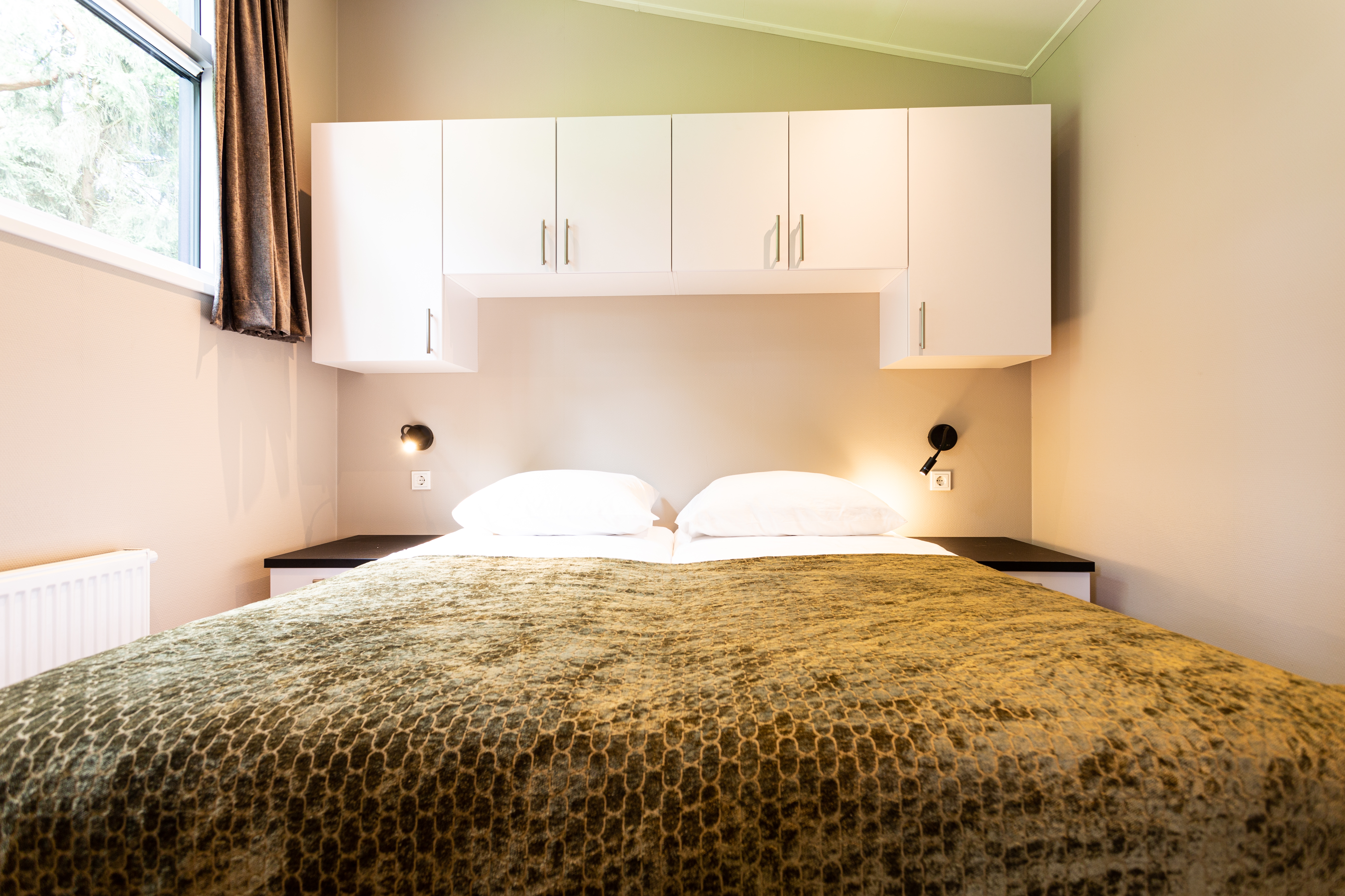 In de slaapkamers is het heerlijk tot rust komen op comfortabele tweepersoons boxspringbedden. De woning voor 5 personen beschikt over een slaapkamer met een tweepersoonsbed en een slaapkamer met een enkel- en een stapelbed. Voor extra ontspanning is de Boslodge Silva uit te breiden met privé wellnessfaciliteiten.