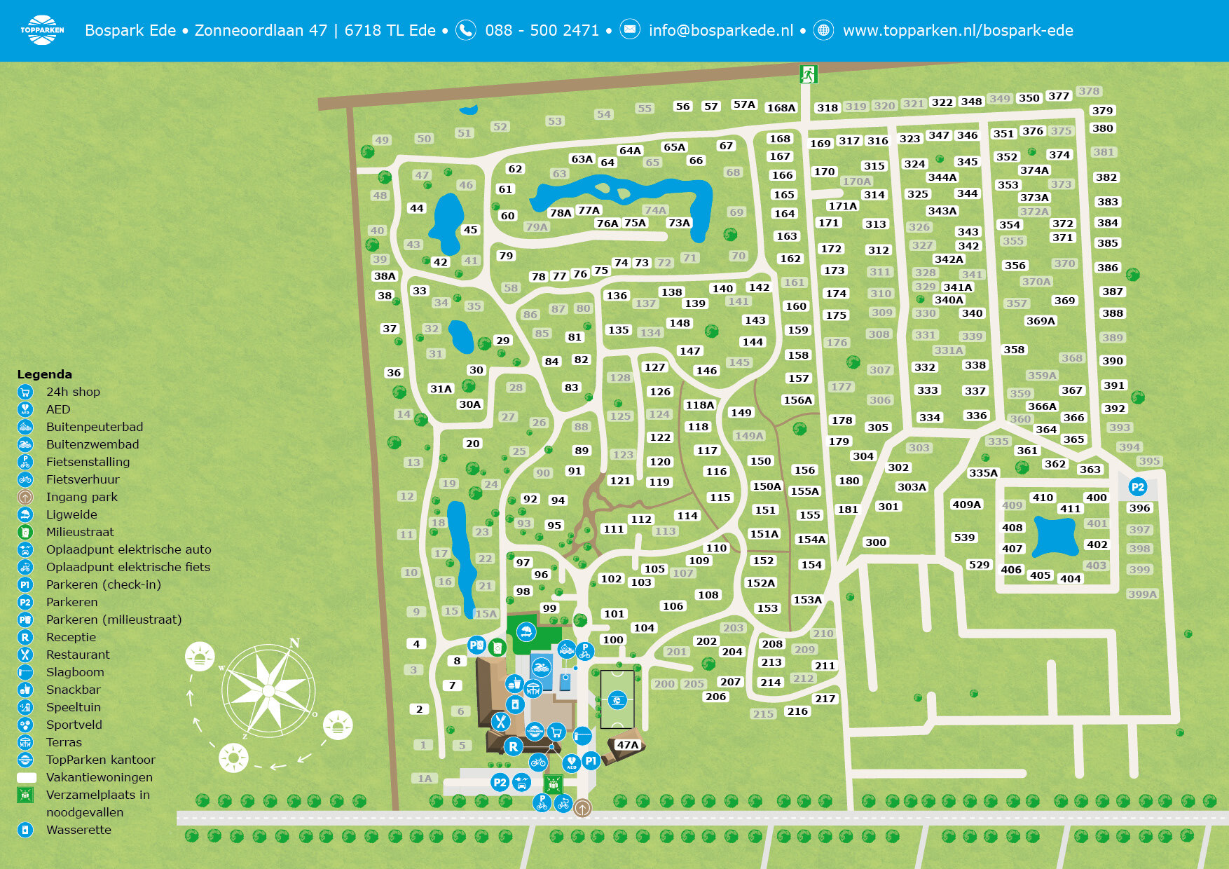 - Verwarmd buitenzwembad, grote indoor speelruimte, bowlingbanen, restaurant met snackbar & sport- en speelvelden