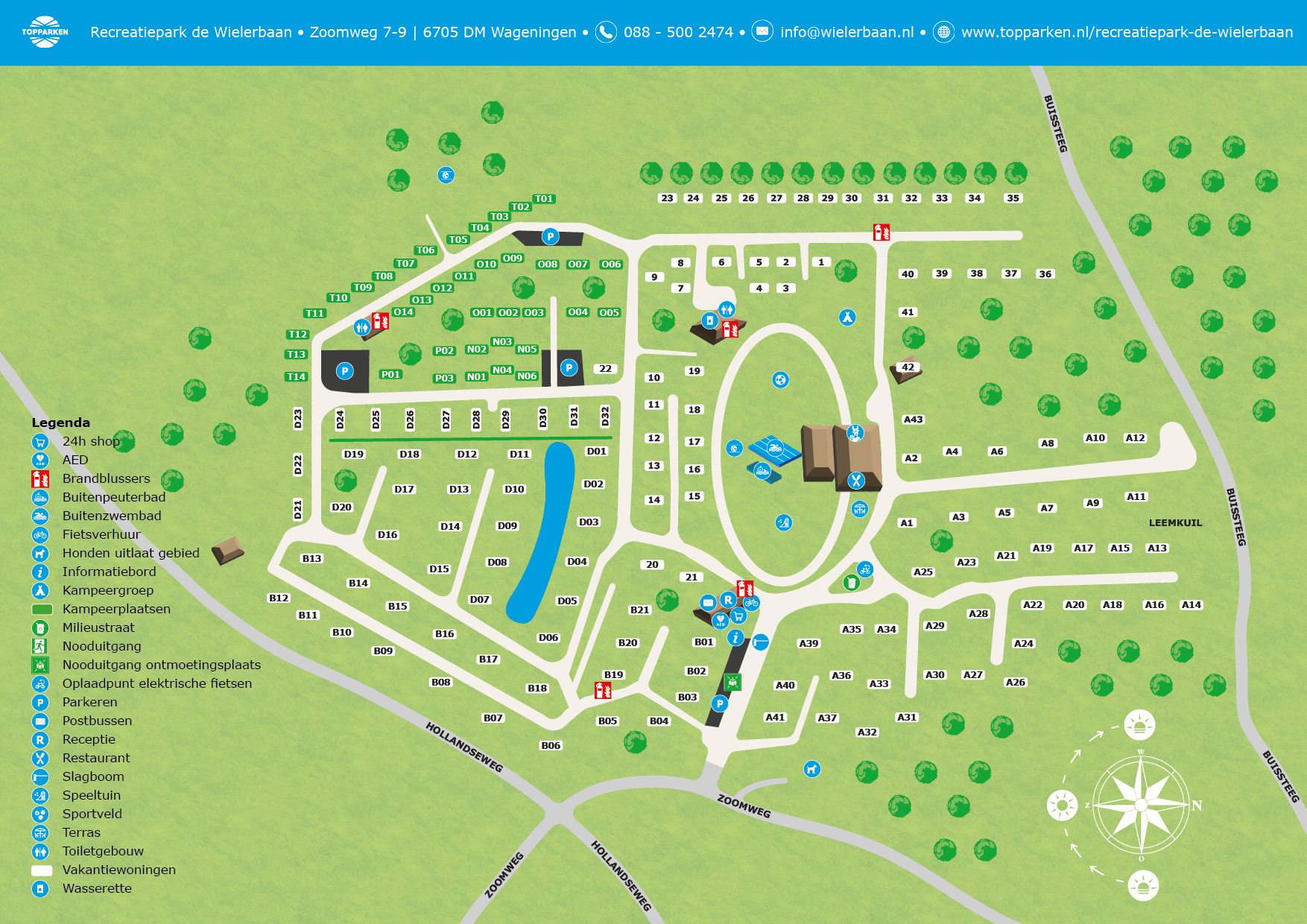 Recreatiepark de Wielerbaan is een kleinschalig vakantiepark gelegen in Wageningen. Wageningen is een prachtige historische stad welke bekend staat om de universiteit, als de Stad der Bevrijding en om de uitgestrekte uiterwaarden. Qua ligging is Wageningen gevestigd precies tussen Veluwe, de Utrechtse Heuvelrug en de Betuwe in. De mix tussen historie en natuur maakt dit een mooie locatie om een vakantiewoning te kopen.