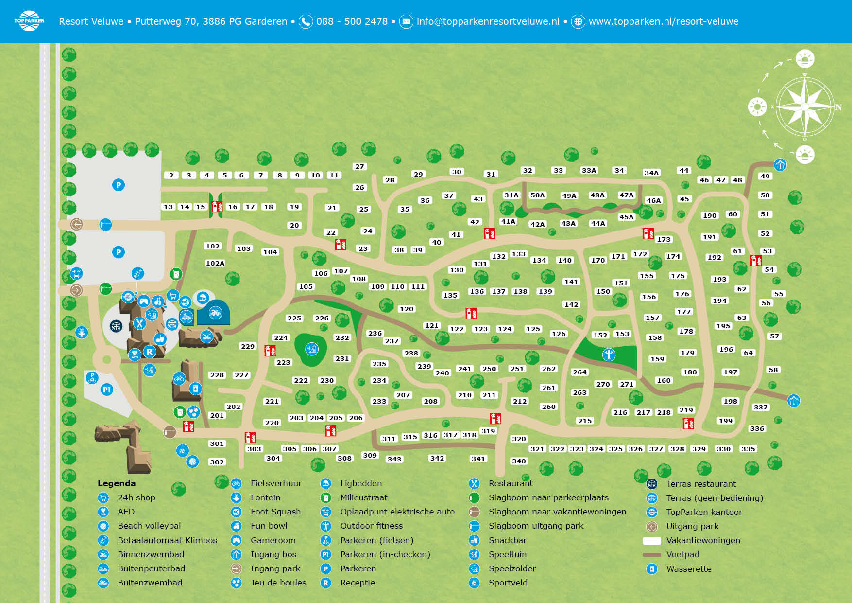 Resort Veluwe ligt in Garderen, midden in de Gelderse bossen. Het luxe vakantiepark beschikt over een groot aanbod aan faciliteiten en grenst aan het Klimbos Garderen en het prachtige Speulderbos. Het gehele vakantiepark heeft een natuurlijke en luxe uitstraling, aansluitend op de omgeving; van de entree tot en met de bewegwijzering. De vele faciliteiten en prachtige ligging op de Veluwe maken het de ideale vakantiebestemming voor jong én oud. Dit alles maakt Resort Veluwe een fijne en populaire locatie voor een eigen vakantiewoning voor zowel eigen gebruik, verhuur of een combinatie hiervan.